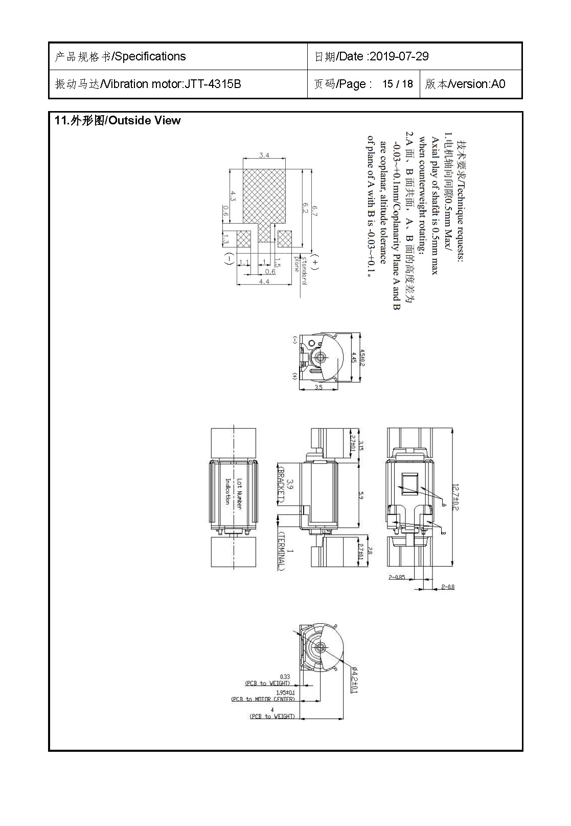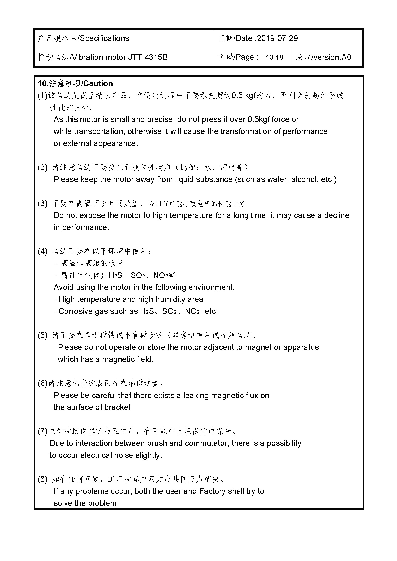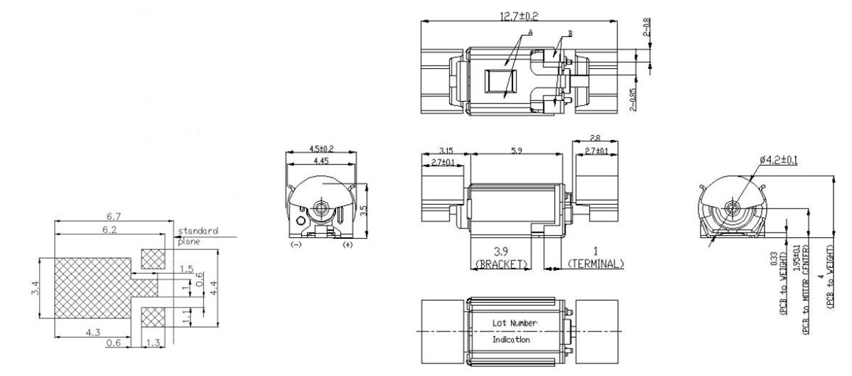 Size:12.7*4.5*3.5 | Rated voltage:2.3V | Rated current:≤130mA | Rated speed:8500±2500 | Starting voltage:≤2.1V