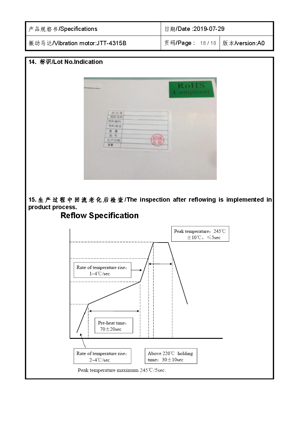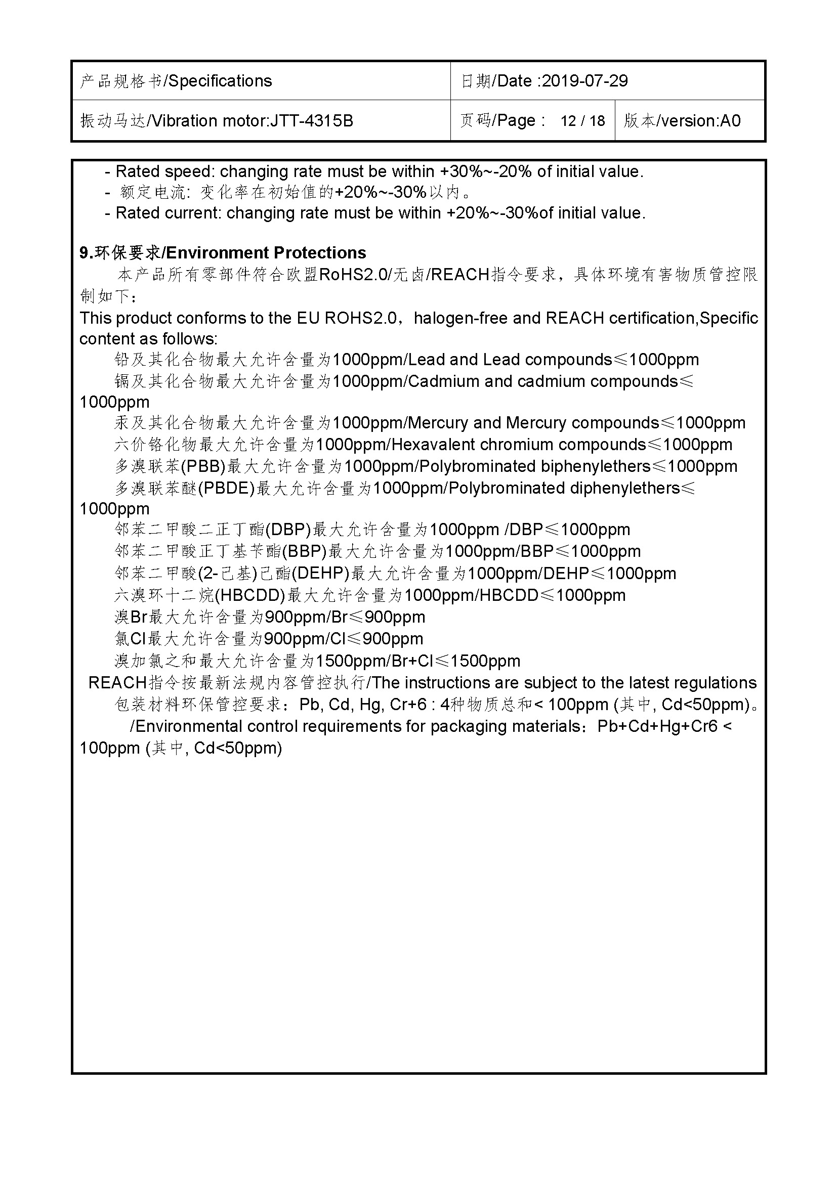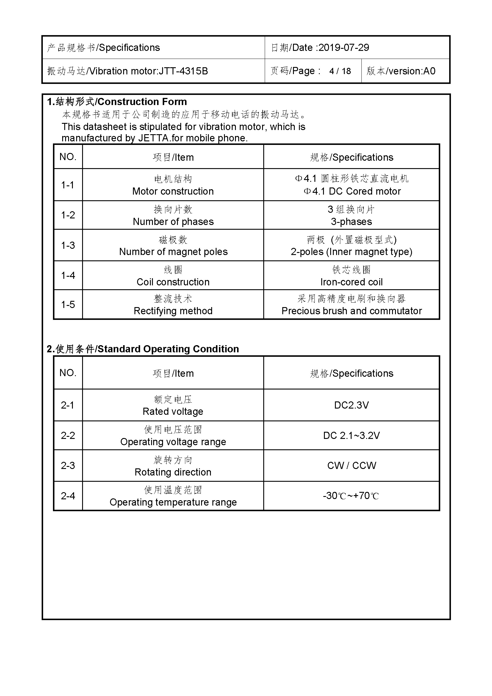 Size:12.7*4.5*3.5 | Rated voltage:2.3V | Rated current:≤130mA | Rated speed:8500±2500 | Starting voltage:≤2.1V