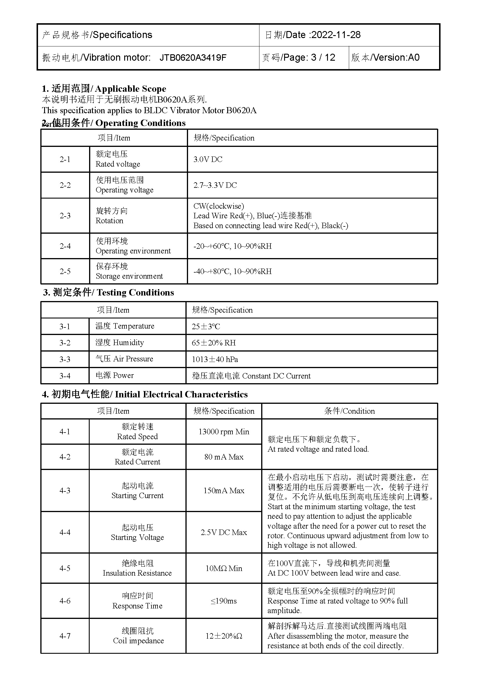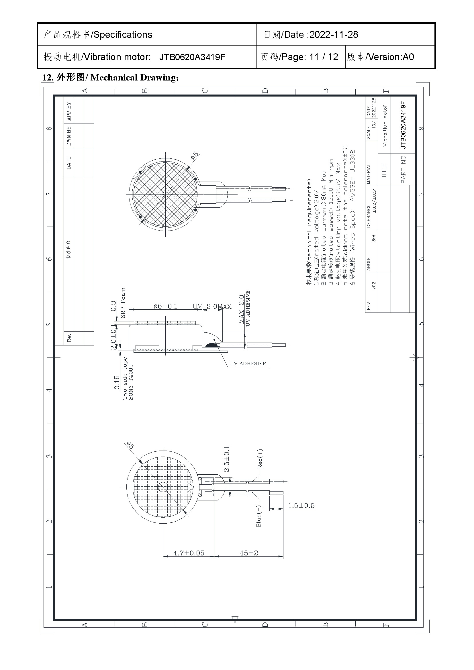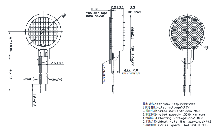 Size:Φ 6*2.0 | Rated voltage:3.0V | Rated current:≤80mA | Rated speed:13000 | Starting voltage:≤2.5V
