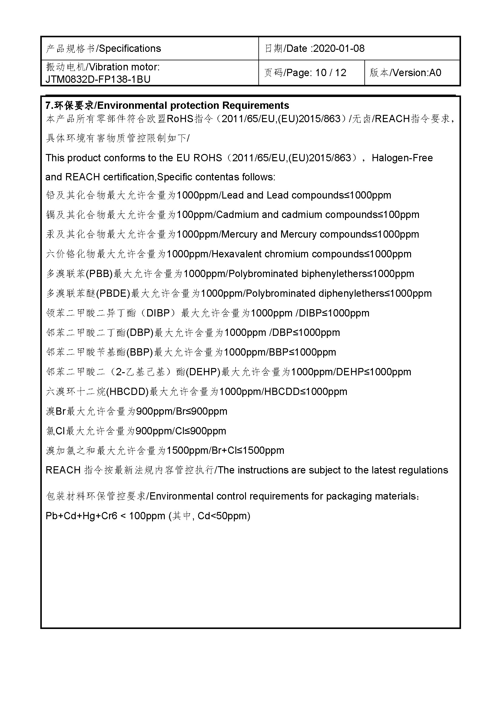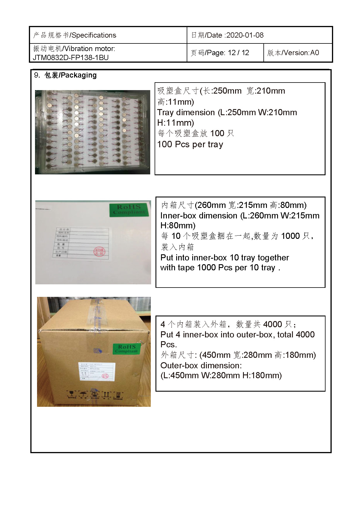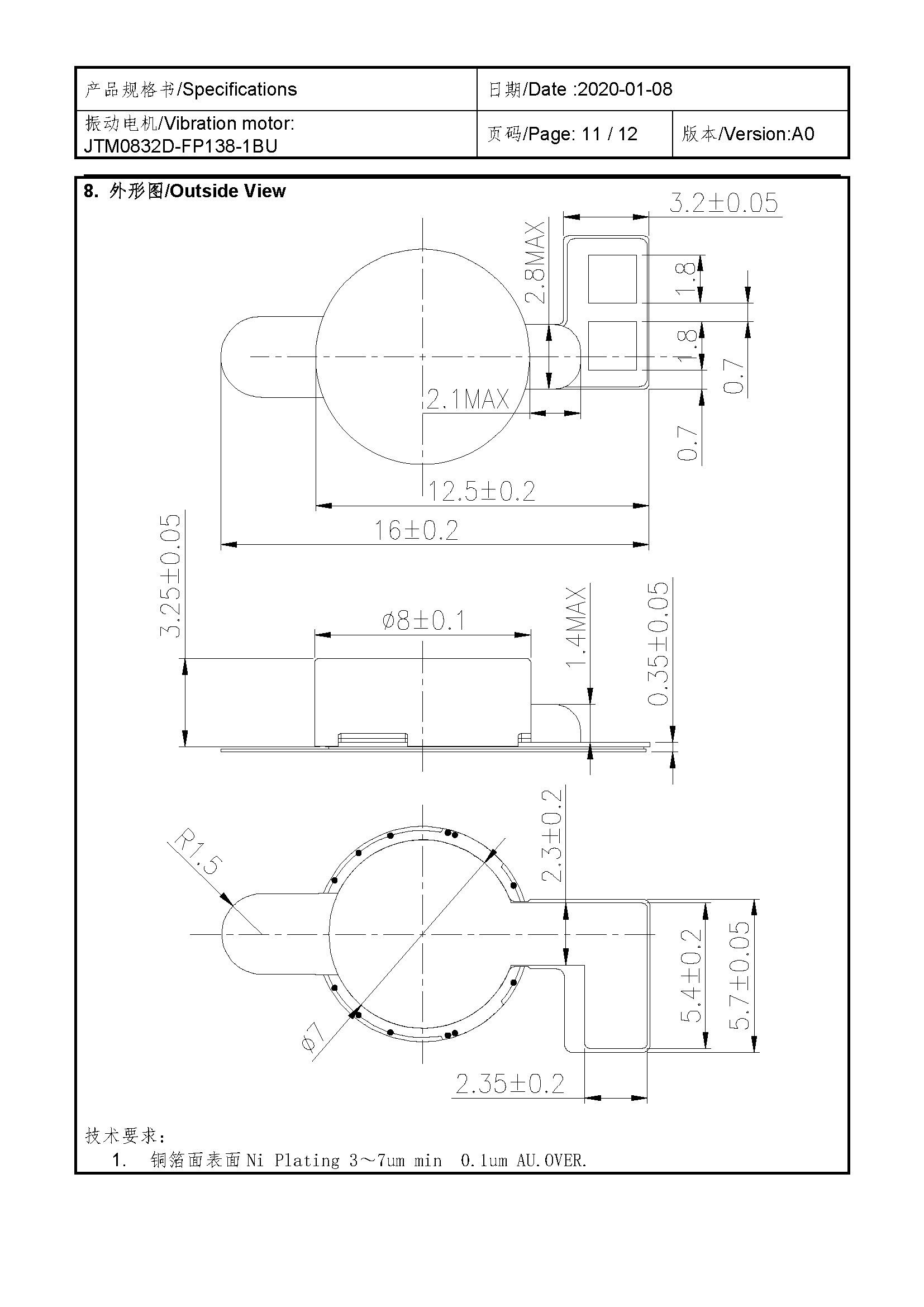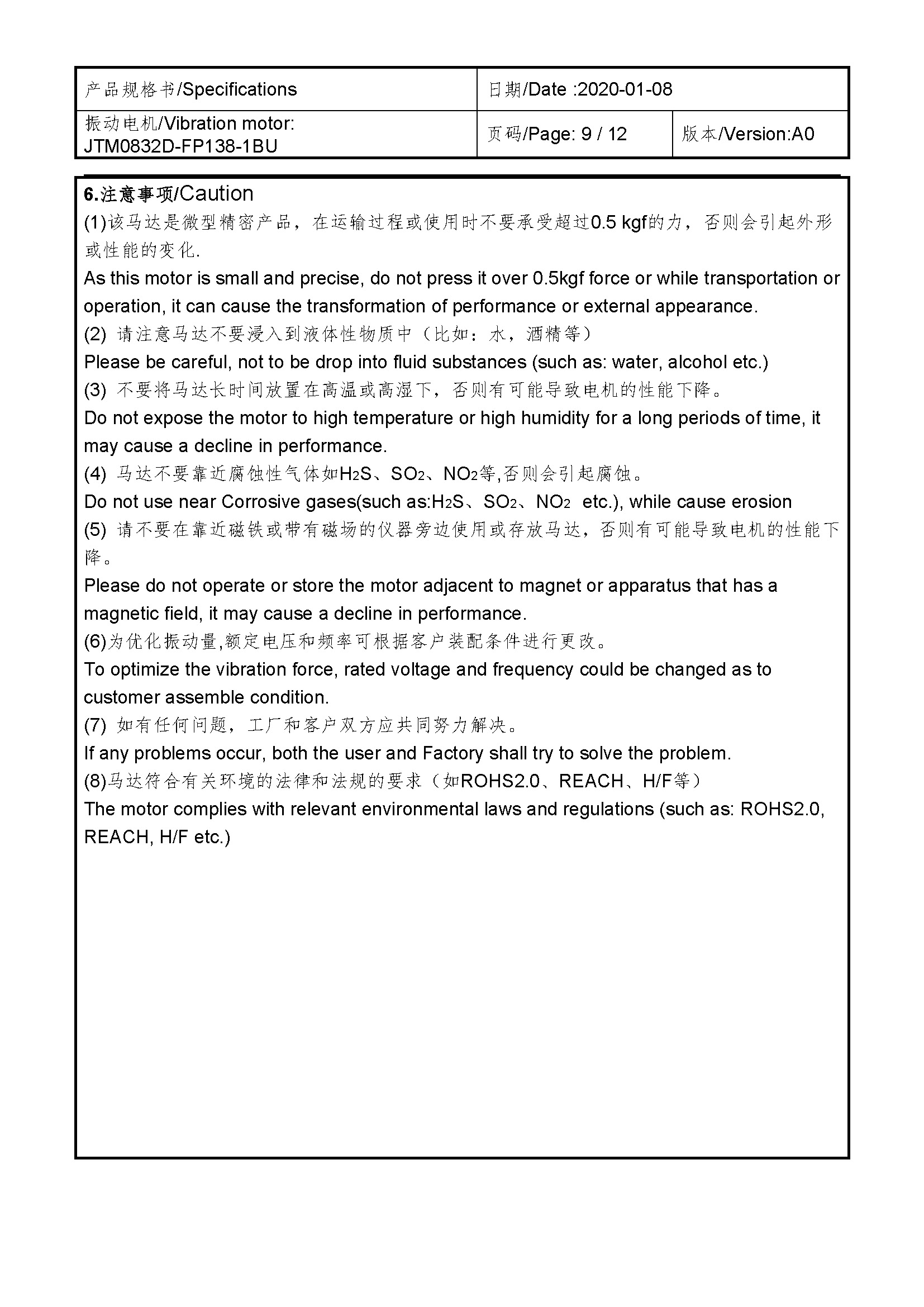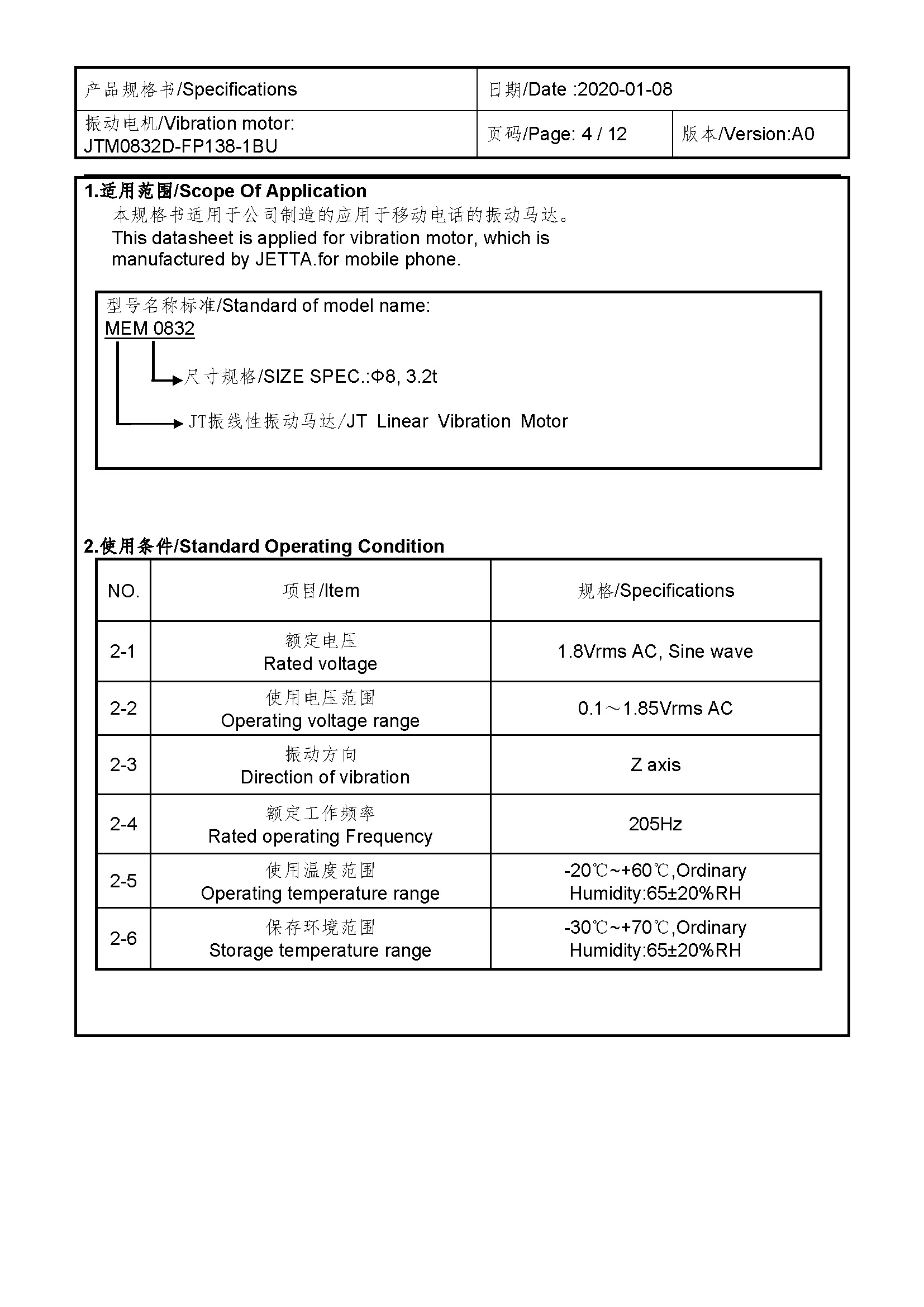 Size:Φ 8*3.25 | Rated voltage:1.8V | Rated current:≤80mA | Rated speed:205±5 Hz | Starting voltage:0.1~1.85V