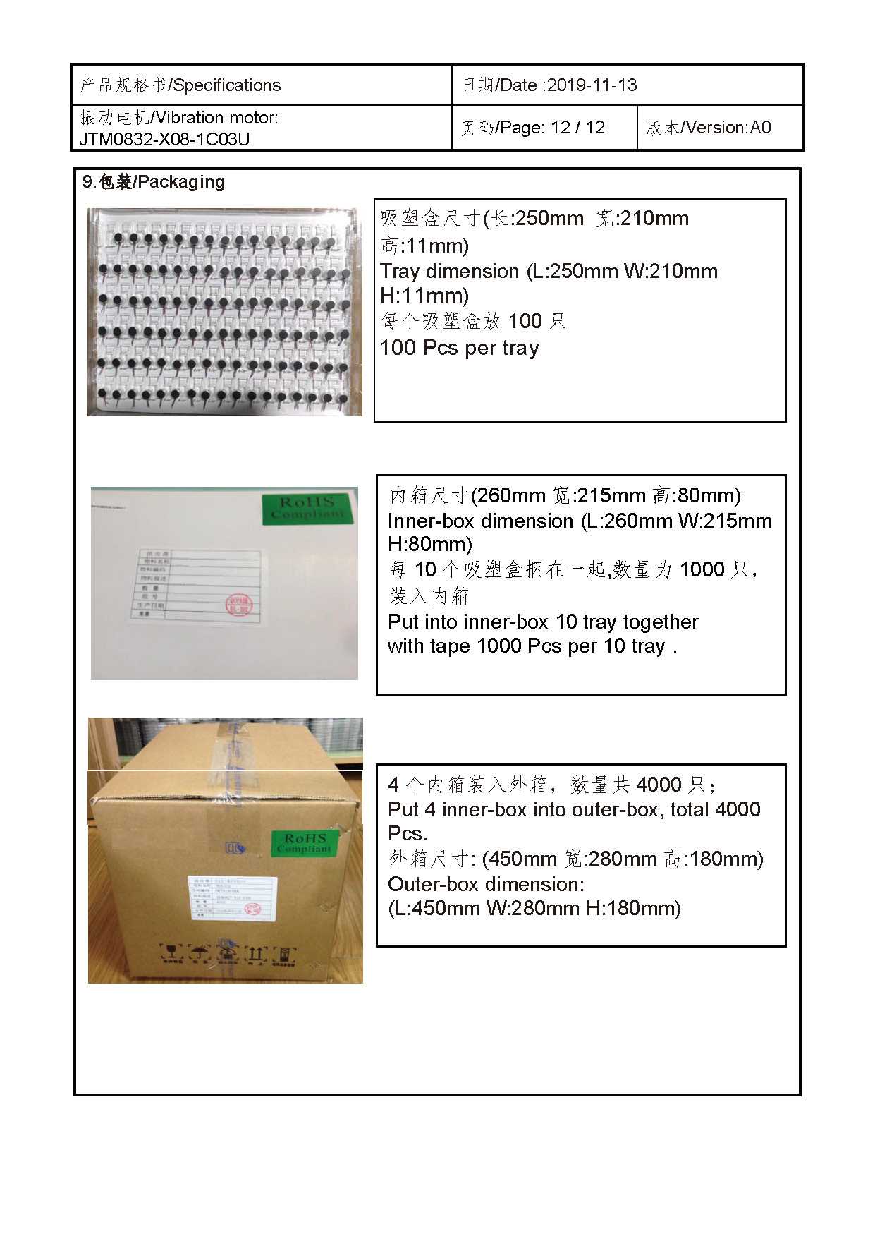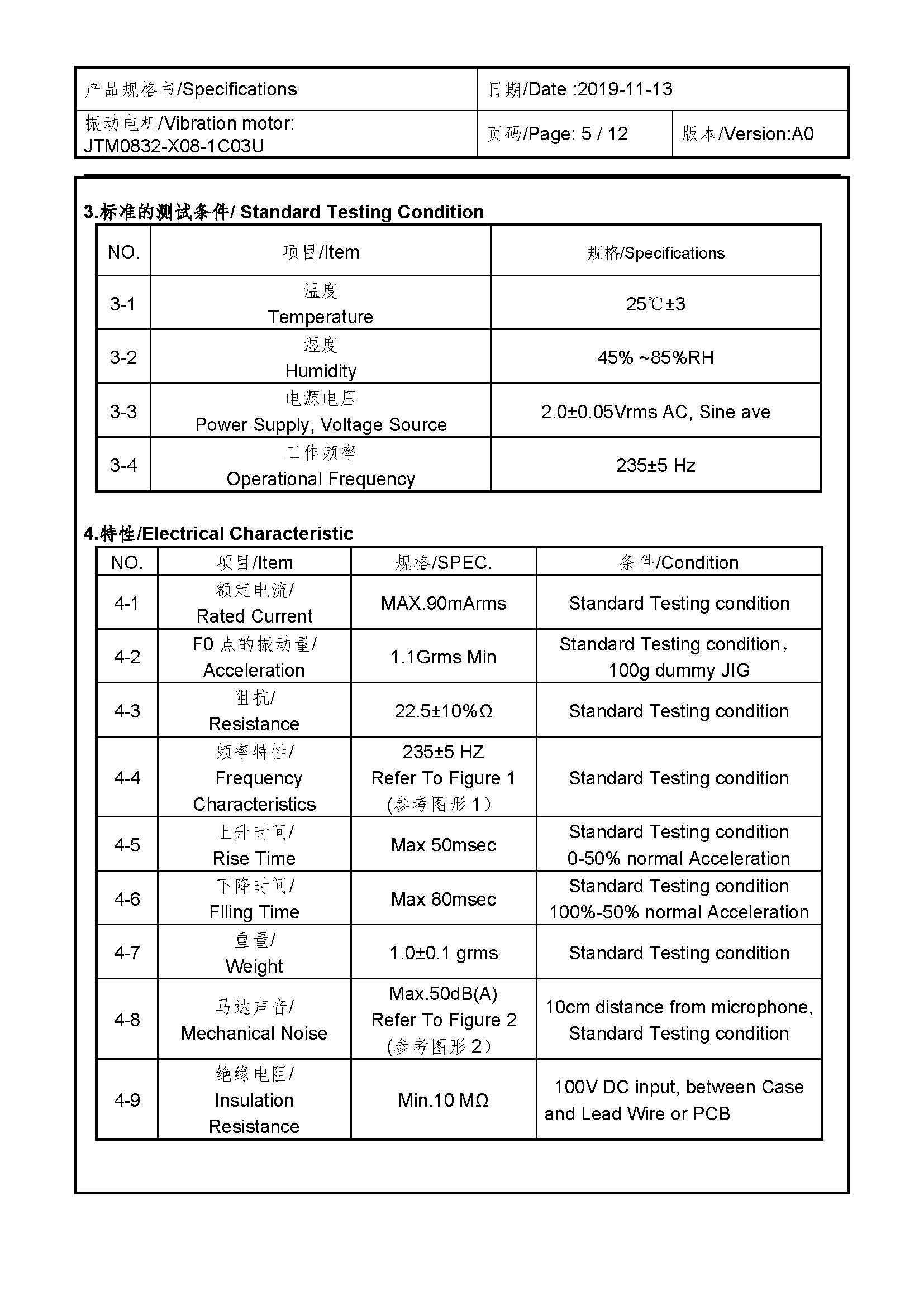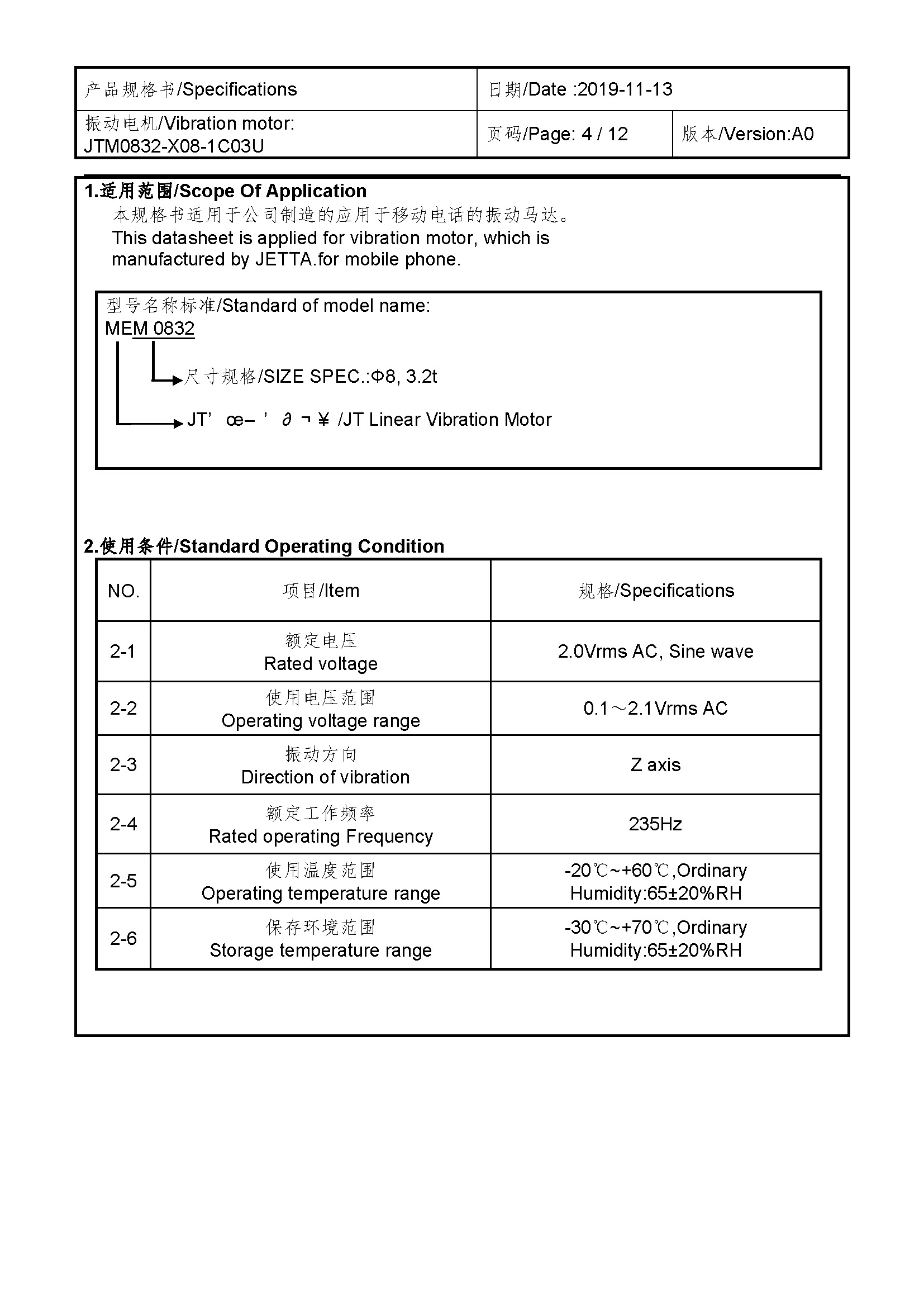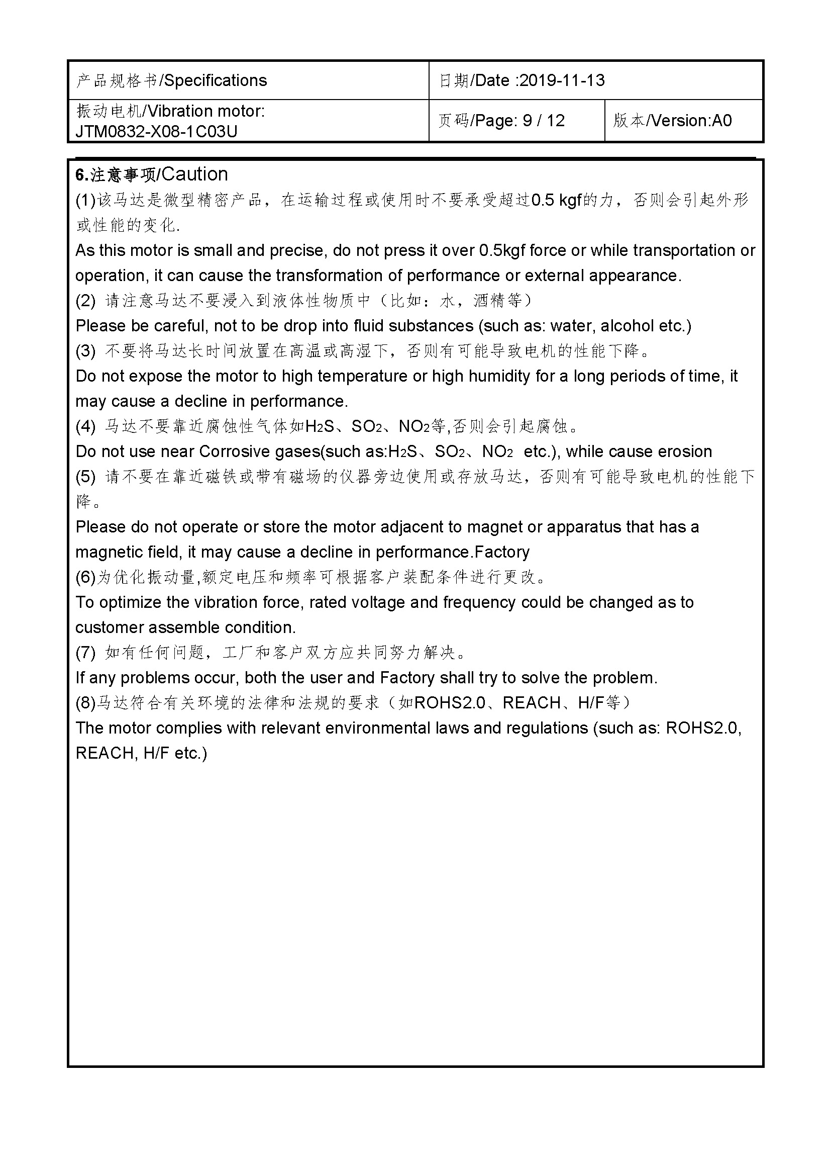 Size:Φ 8*3.25 | Rated voltage:2.0V | Rated current:≤90mA | Rated speed:235±5 Hz | Starting voltage:0.1~2.1V