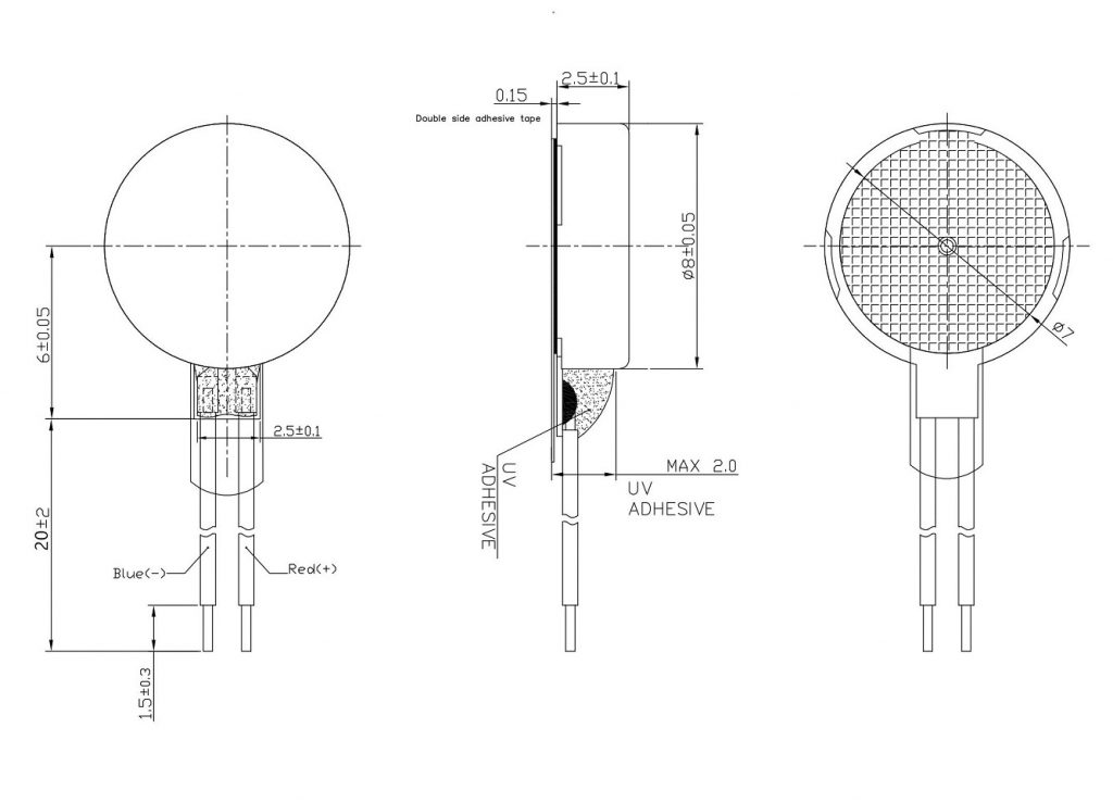 Size:Φ8*2.5 | Rated voltage:3 V | Rated current:≤90mA | Rated speed:14500±3500 | Starting voltage:≤2.5V