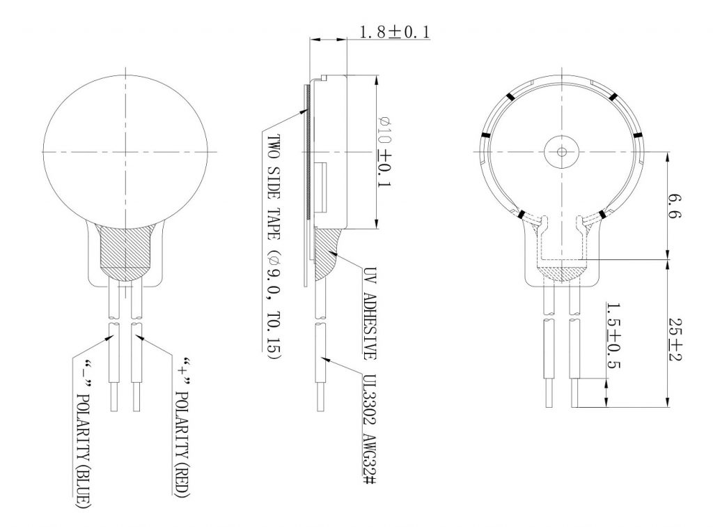 Size:Φ 10*1.8 | Rated voltage:3.0V | Rated current:≤85mA | Rated speed:10000 | Starting voltage:≤2.3V