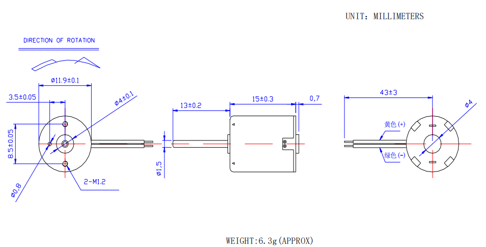 Size:11.9 *15 | Rated voltage:3.0V | Rated current:≤25mA | Rated speed:4580 | Starting voltage:≤1.0V