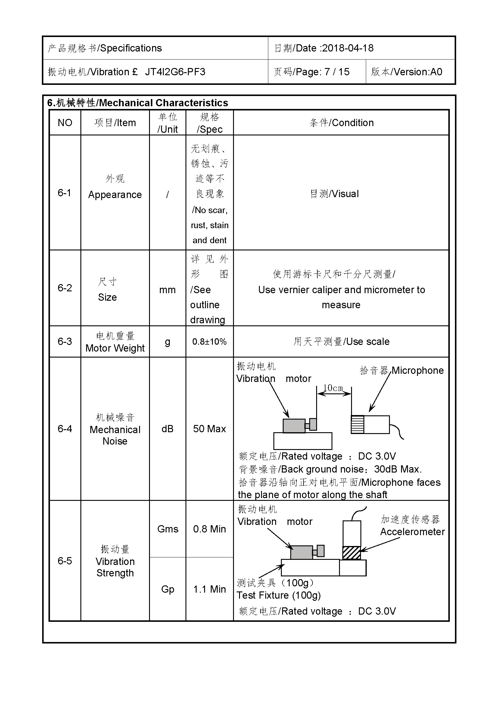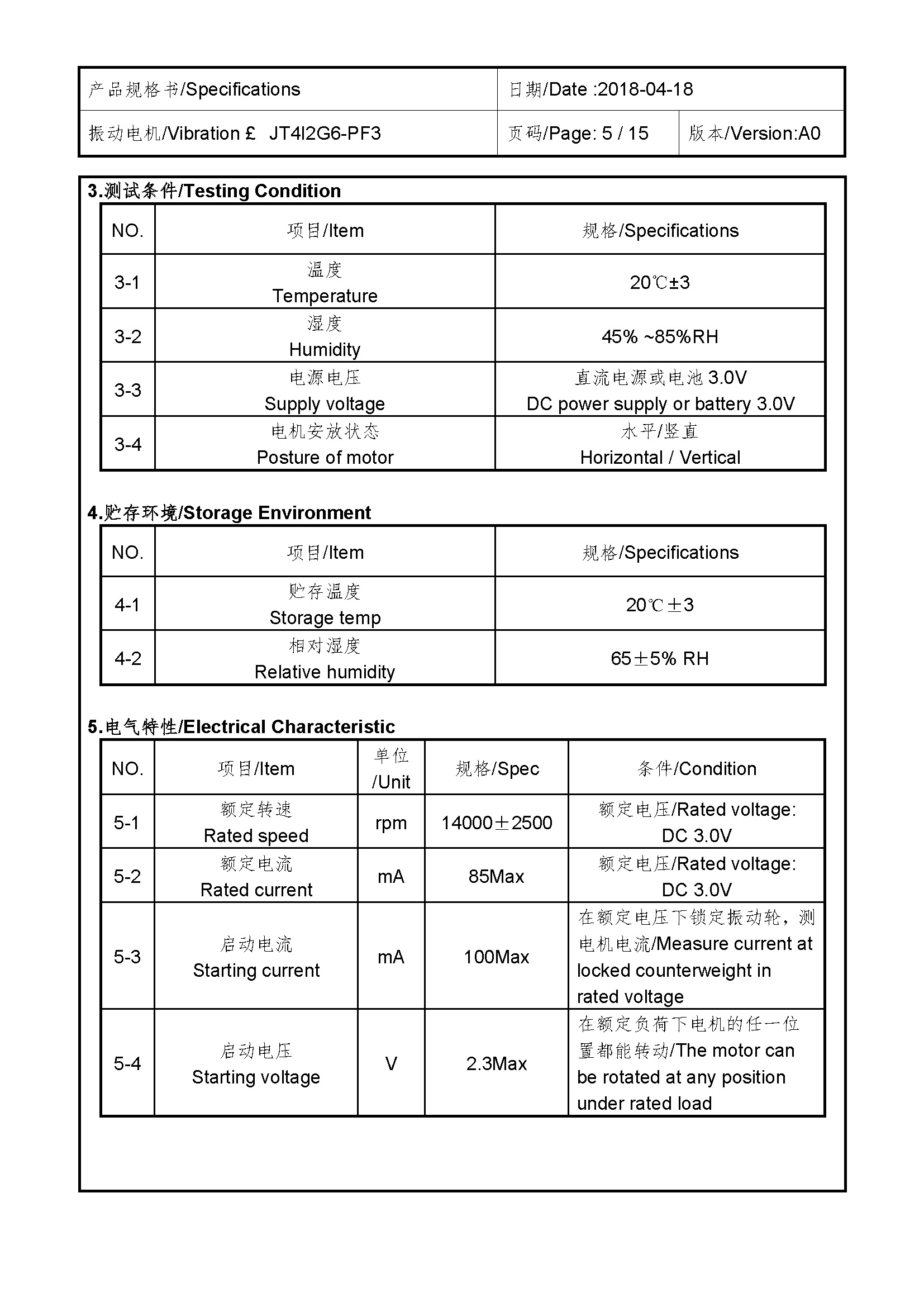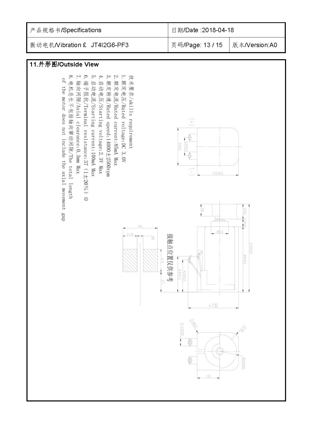 Size:11.9*5.0*5.5 | Rated voltage:3.0V | Rated current:≤85mA | Rated speed:14000±2500 | Starting voltage:≤2.3V