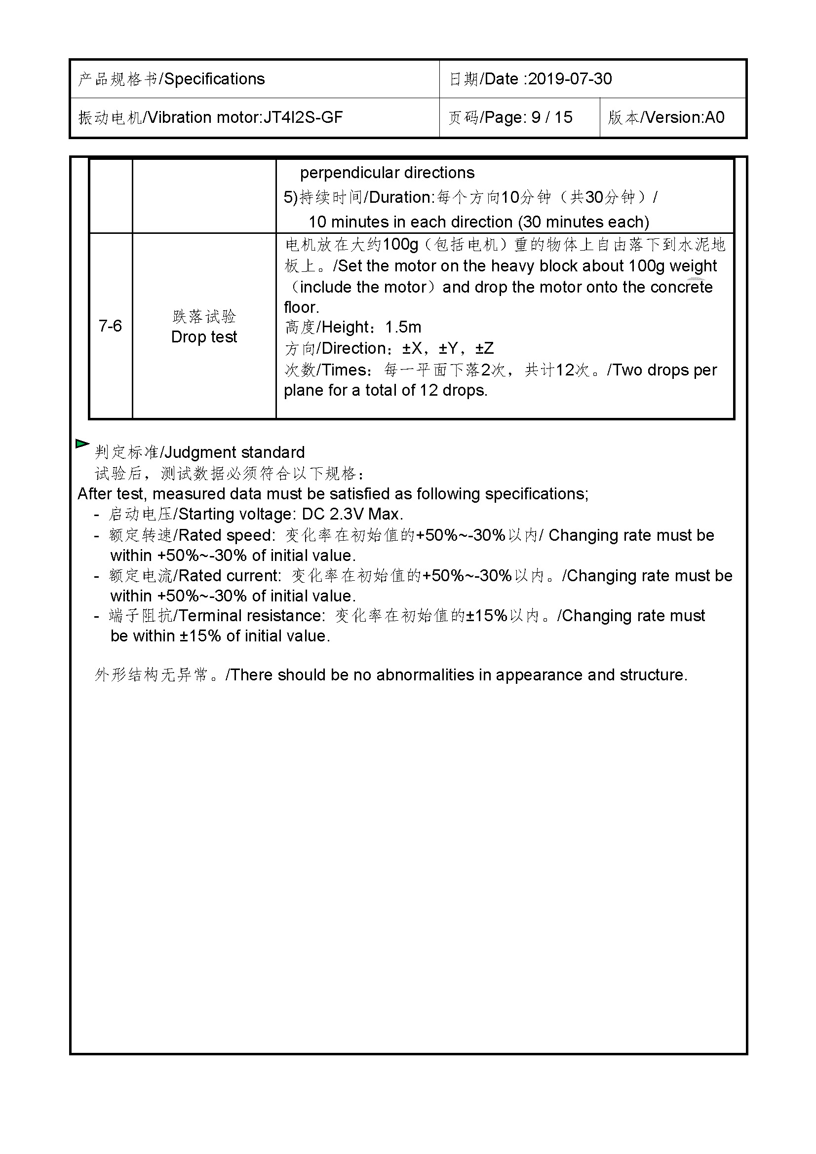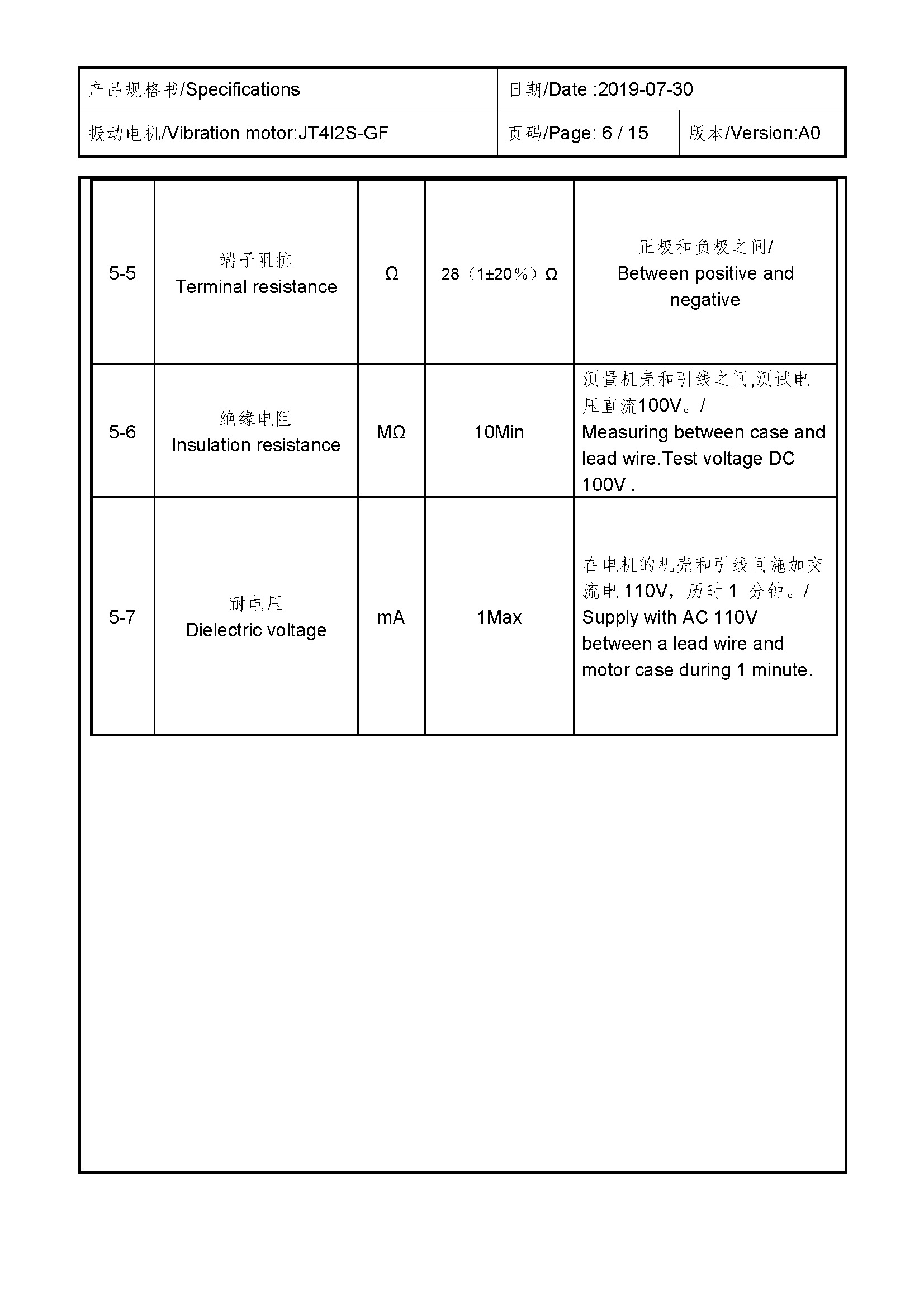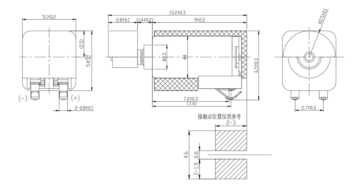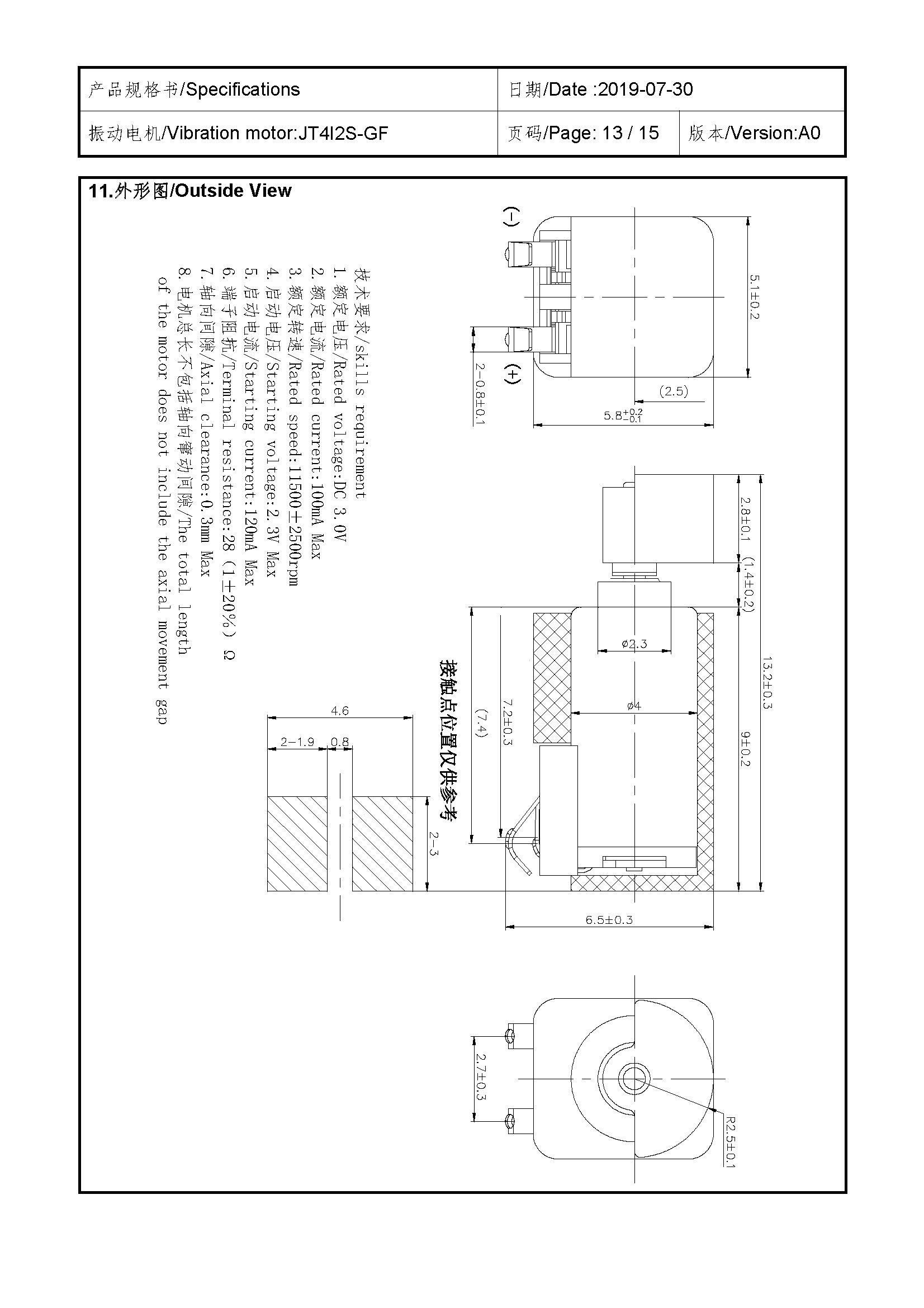 Size:13.2*5.1*5.8 | Rated voltage:3.0V | Rated current:≤100mA | Rated speed:11500±2500 | Starting voltage:≤2.3V