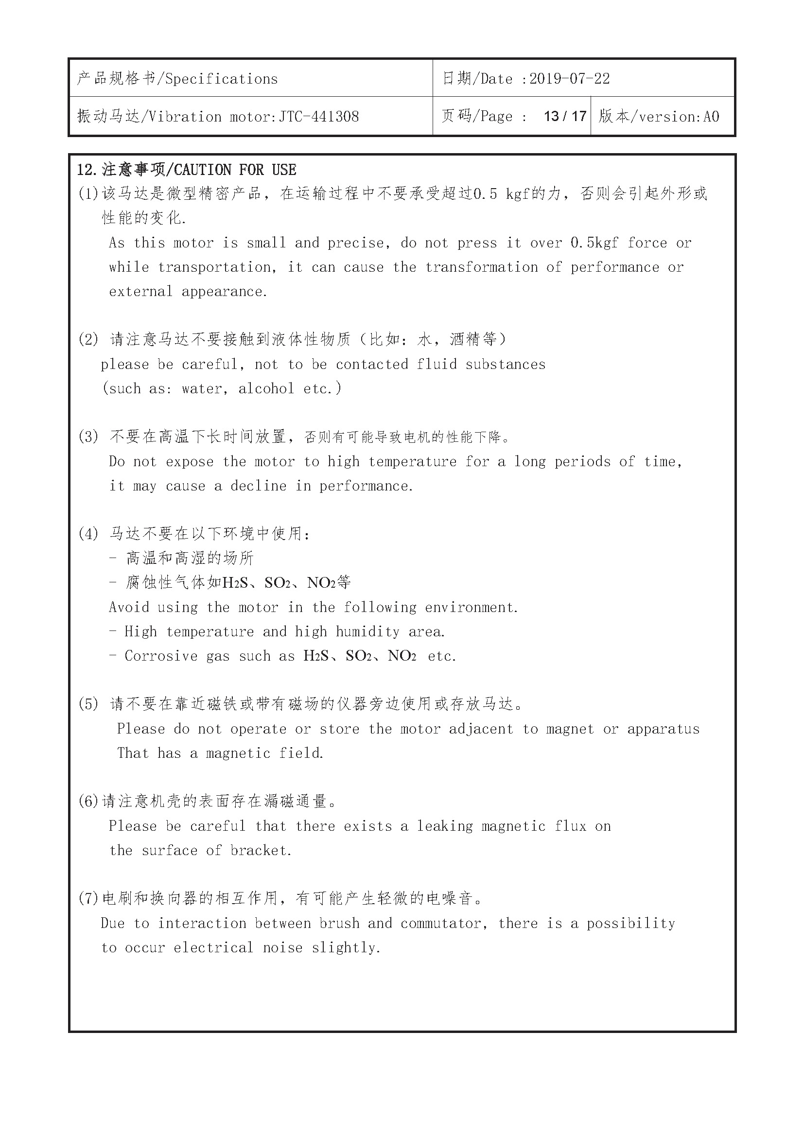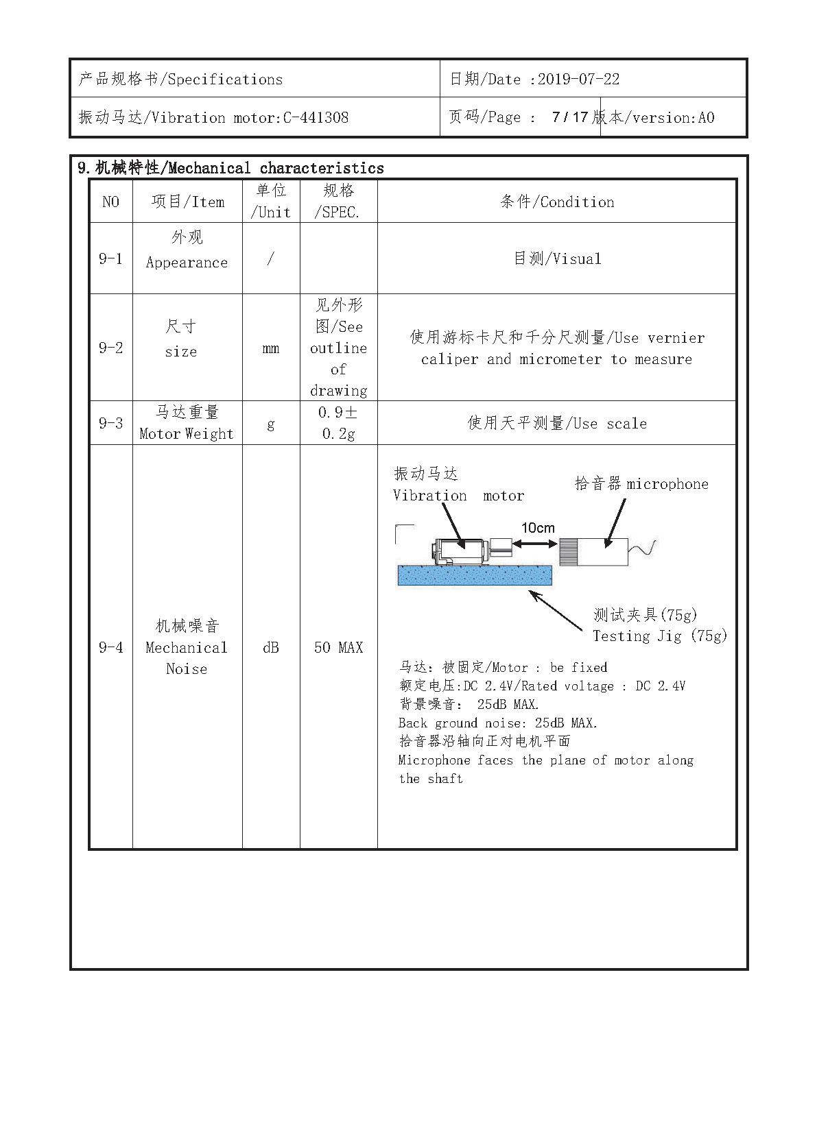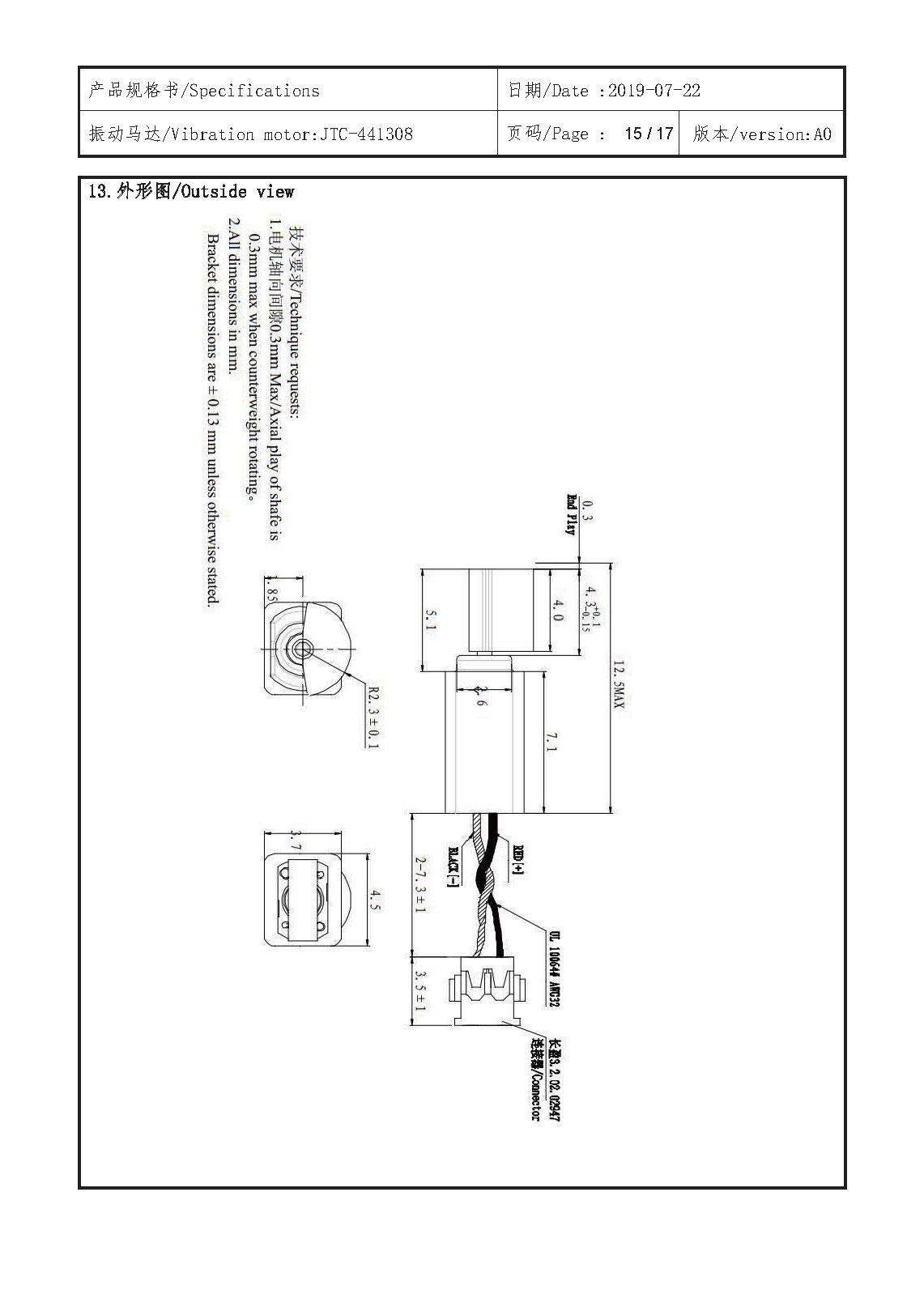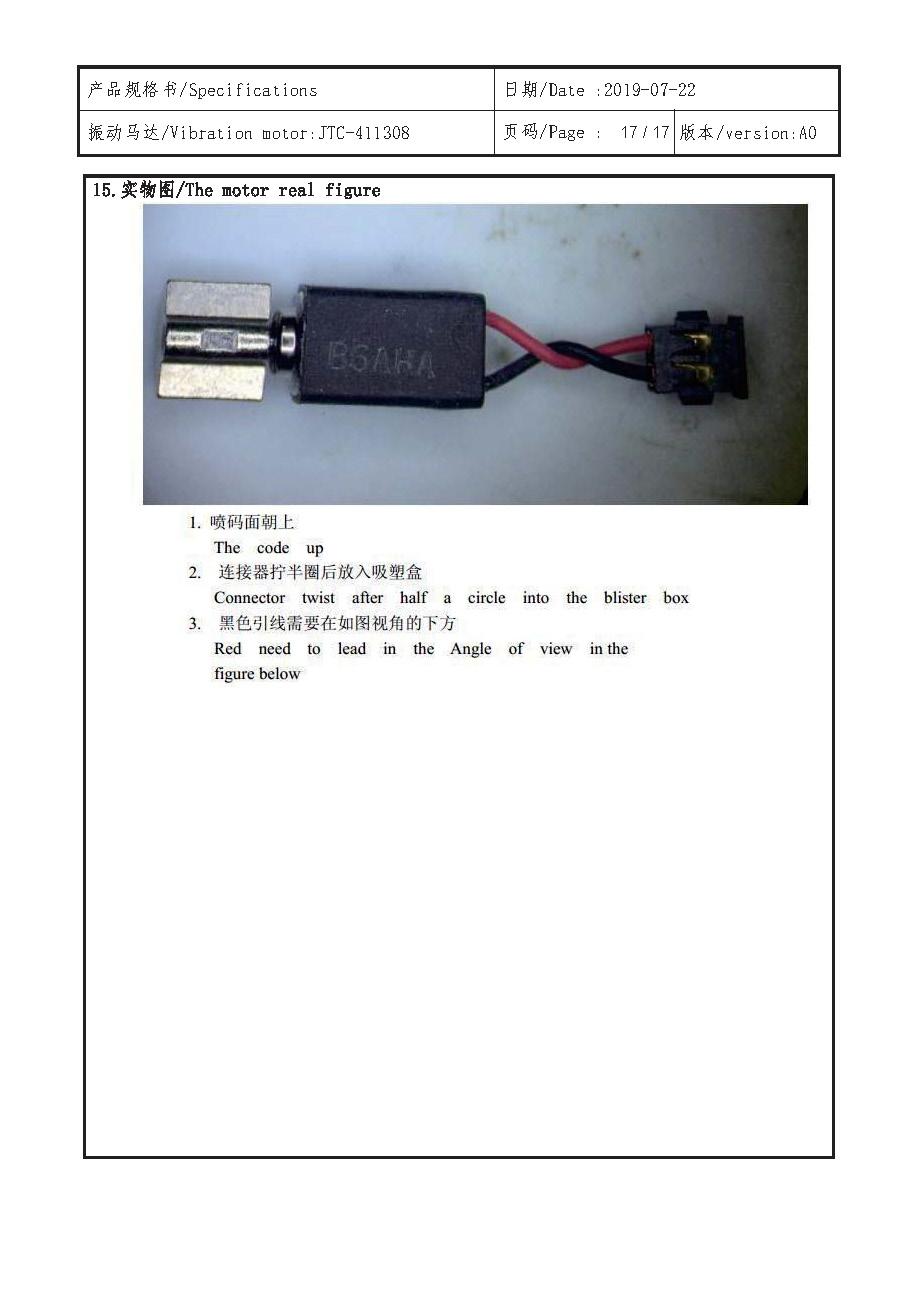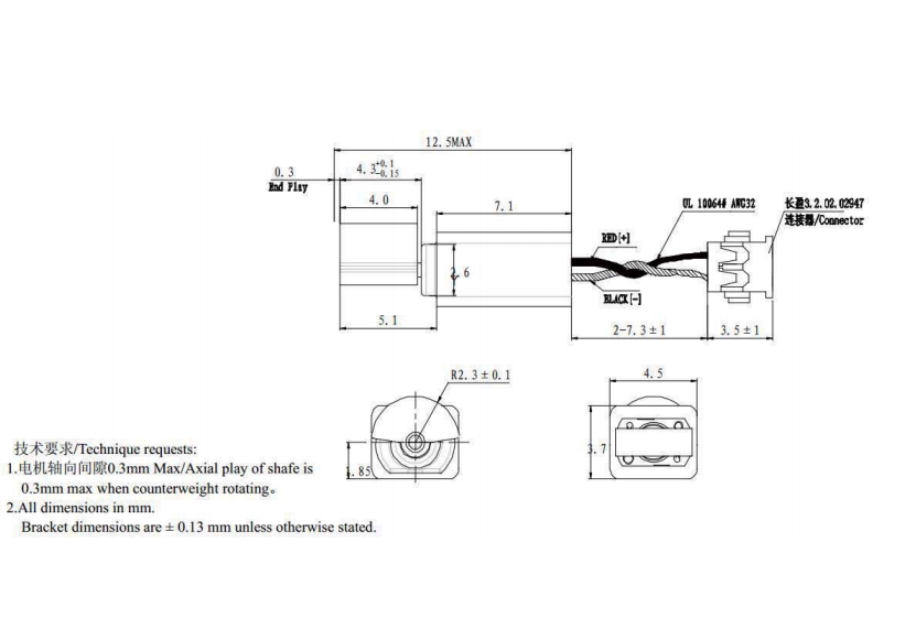 Size:12.5*4.5*3.7 | Rated voltage:2.4V | Rated current:≤220mA | Rated speed:10000±2500 | Starting voltage:≤2.2V