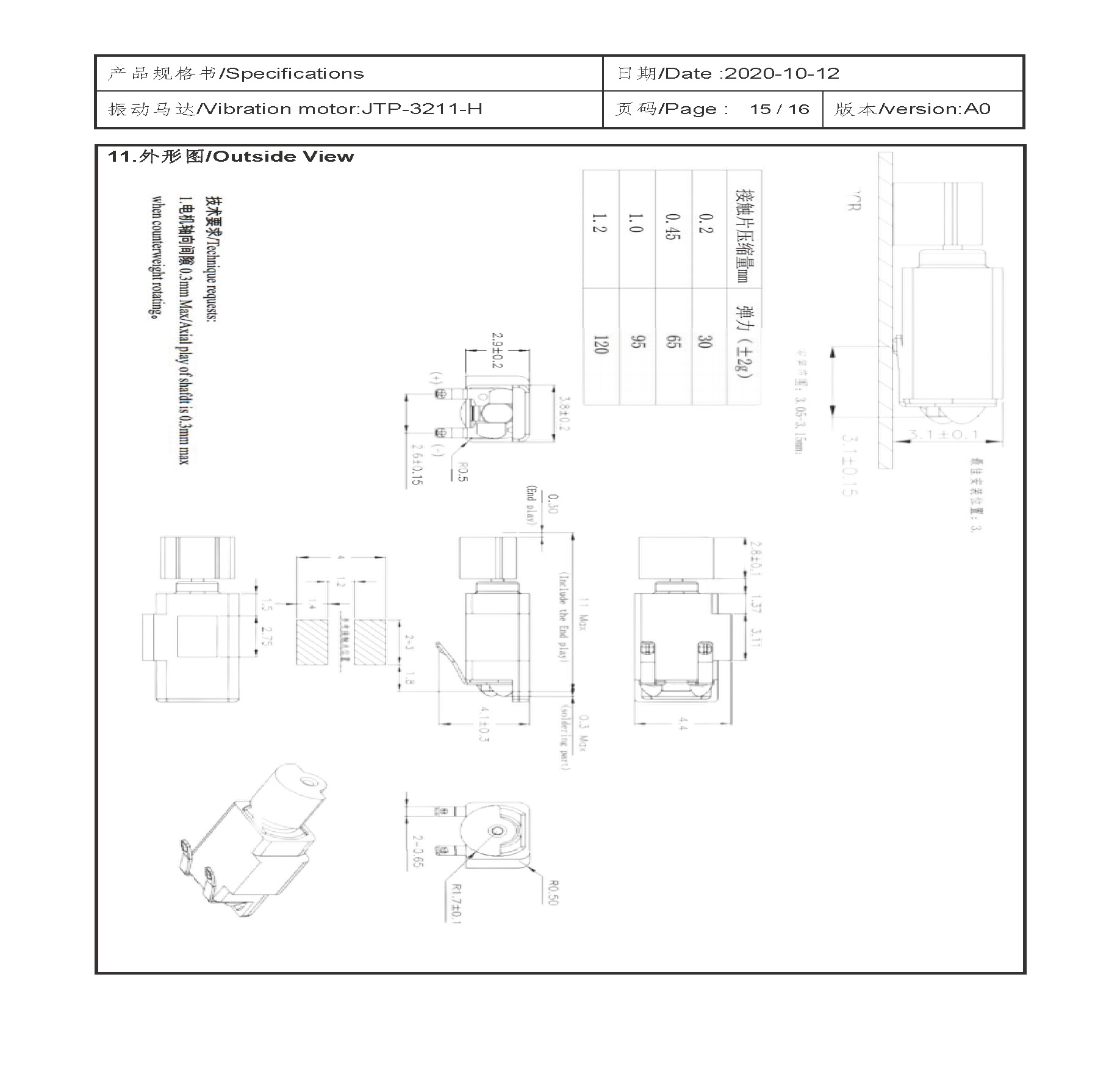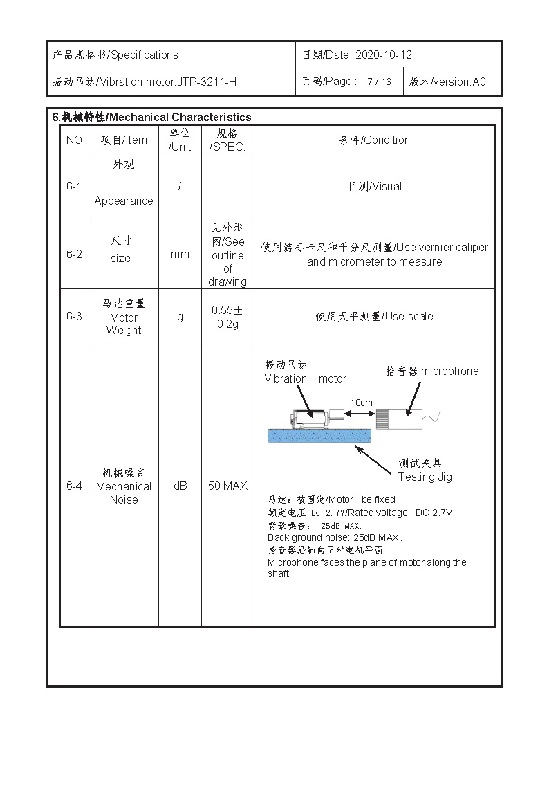 Size:10.35*3.05*3.8 | Rated voltage:2.7V | Rated current:≤100mA | Rated speed:13500±2500 | Starting voltage:≤2.3V