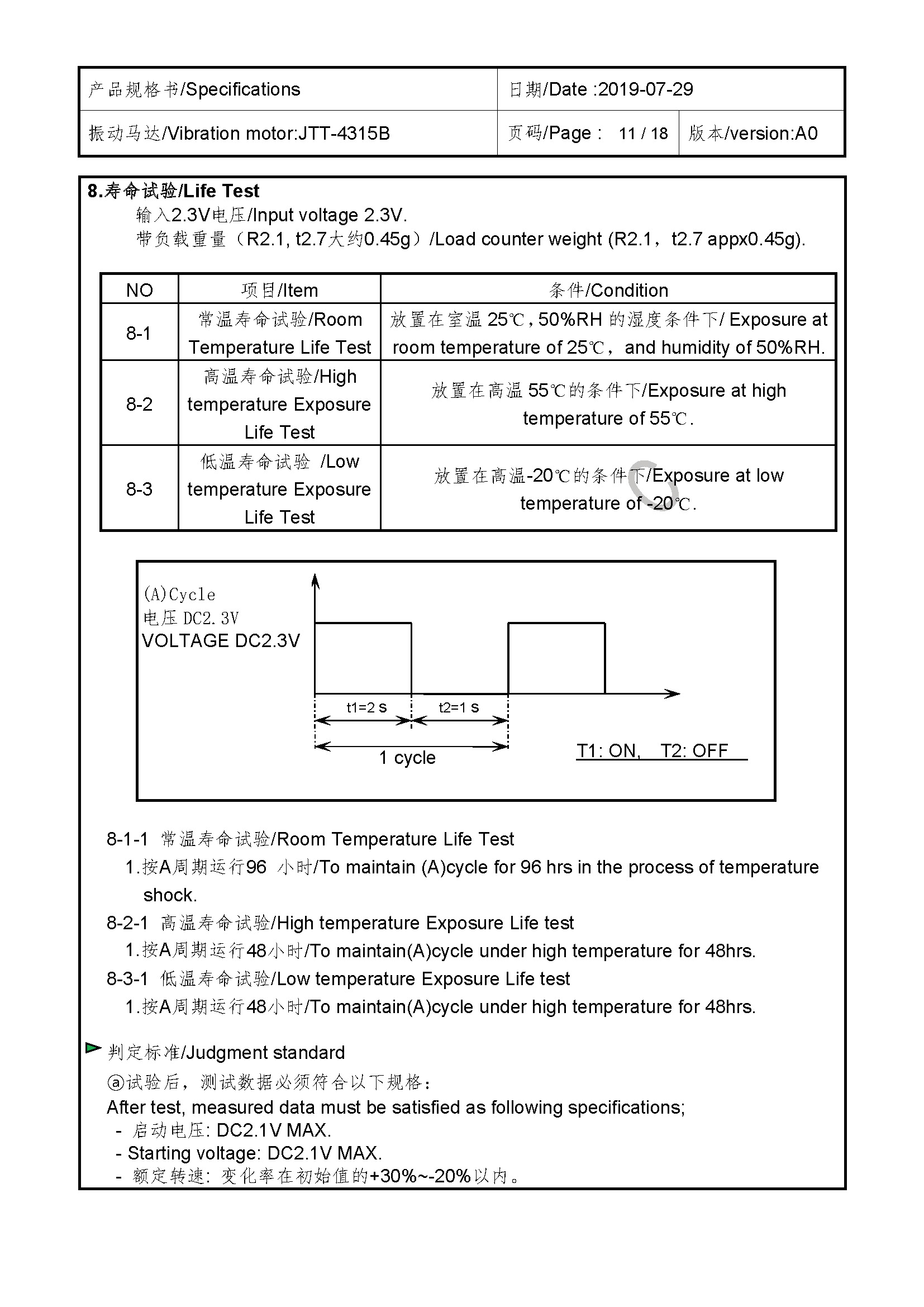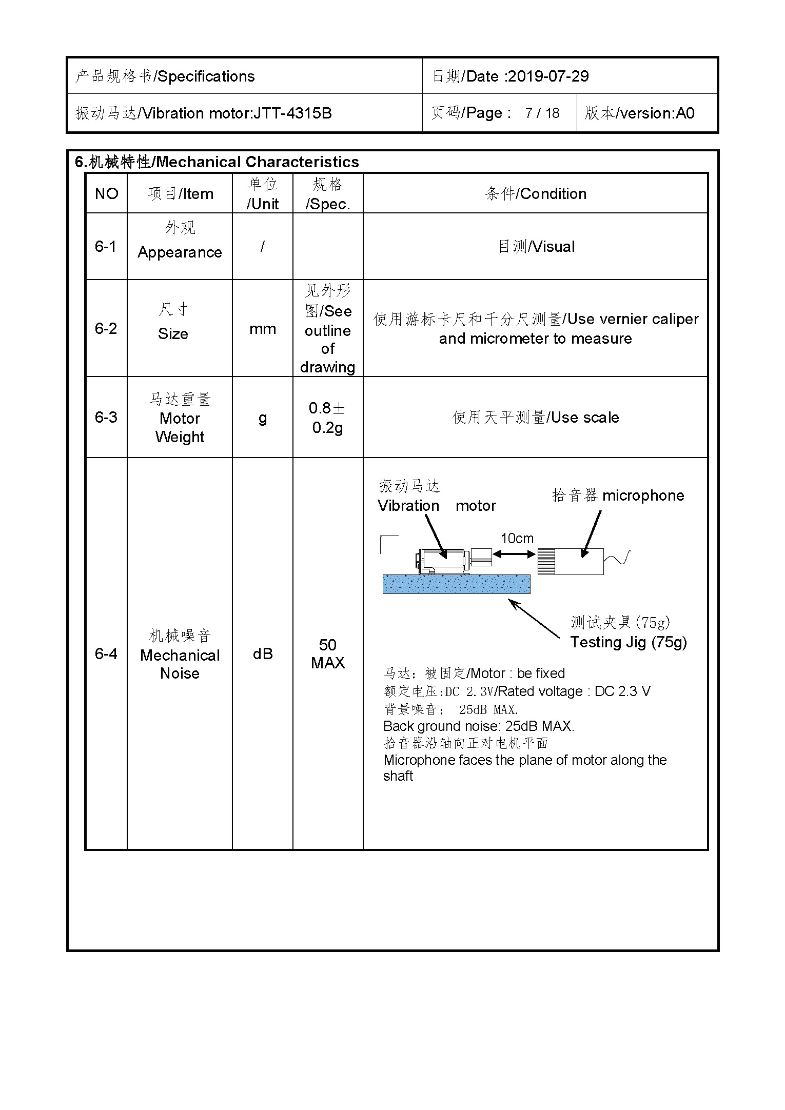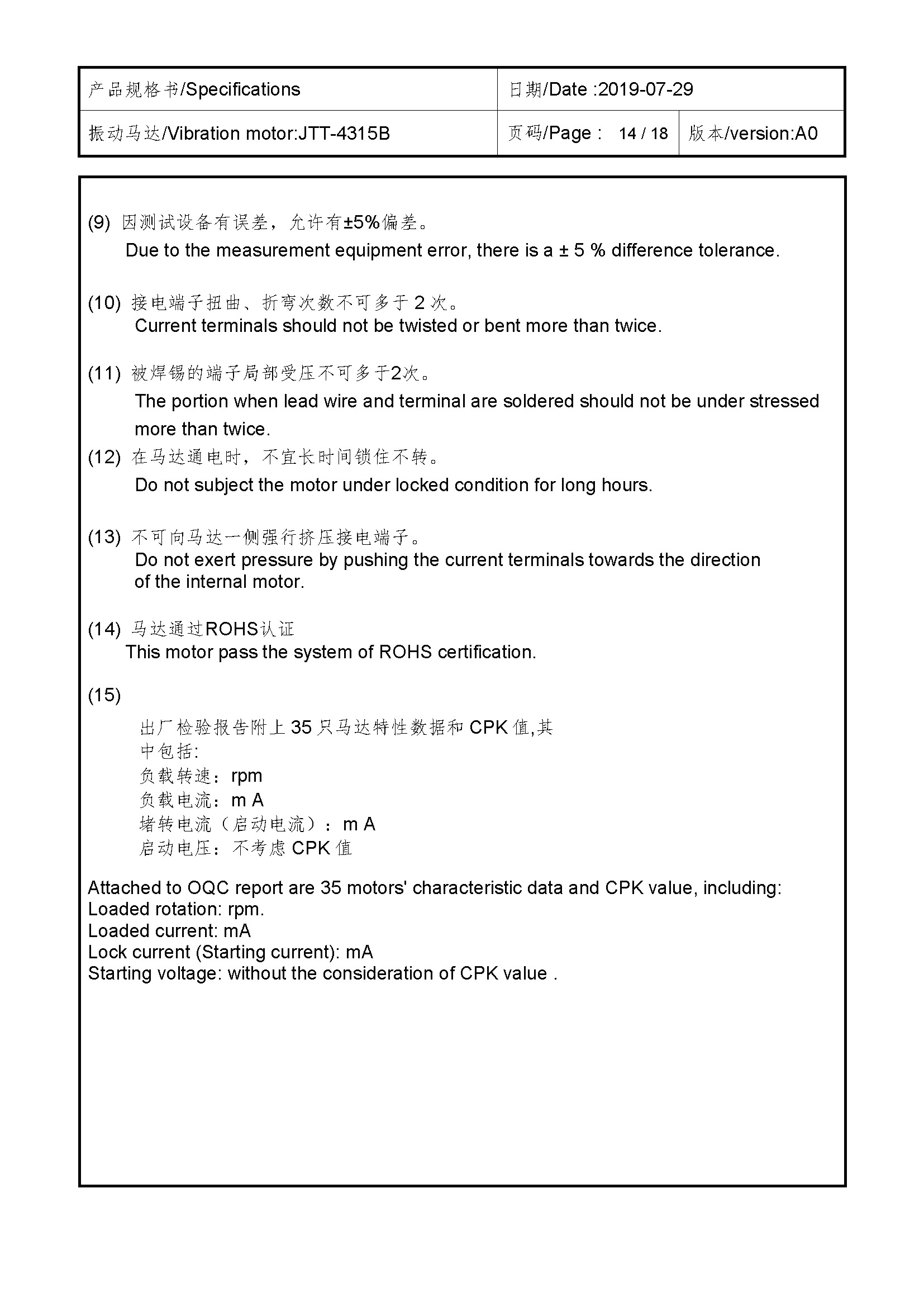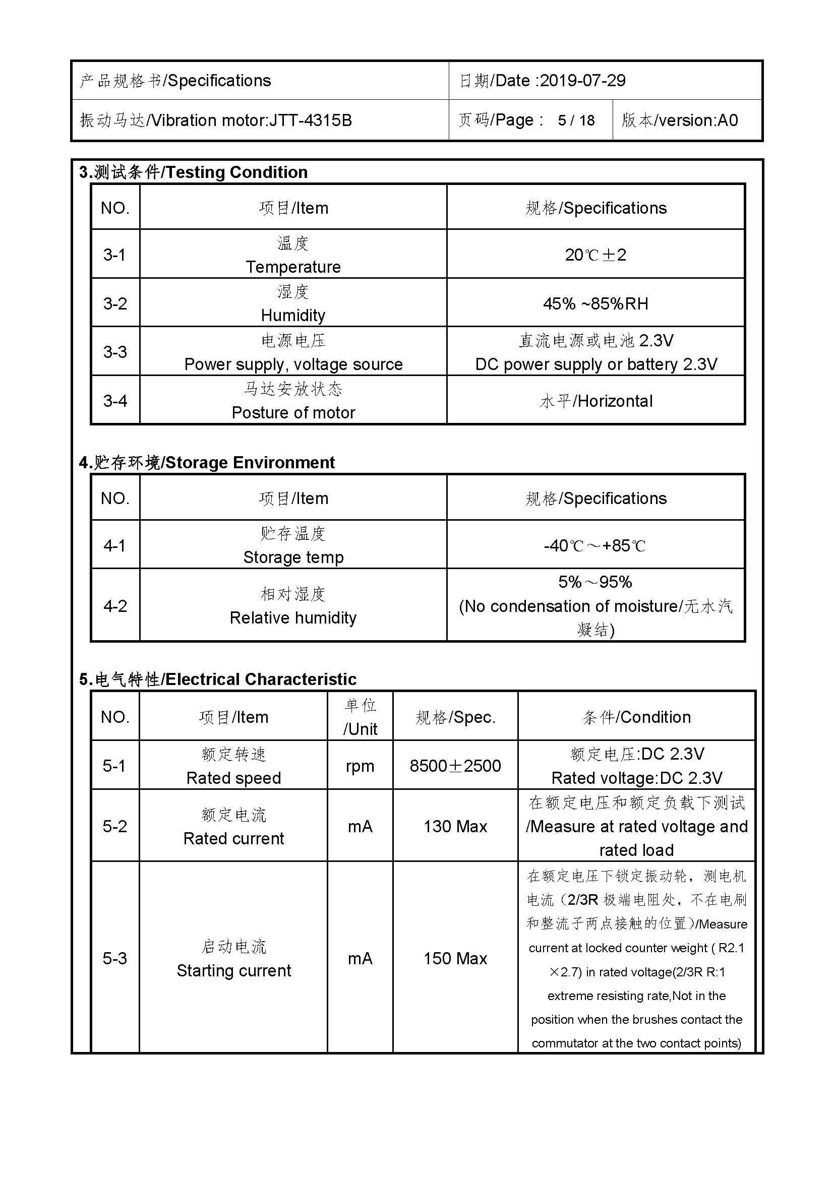 Size:12.7*4.5*3.5 | Rated voltage:2.3V | Rated current:≤130mA | Rated speed:8500±2500 | Starting voltage:≤2.1V