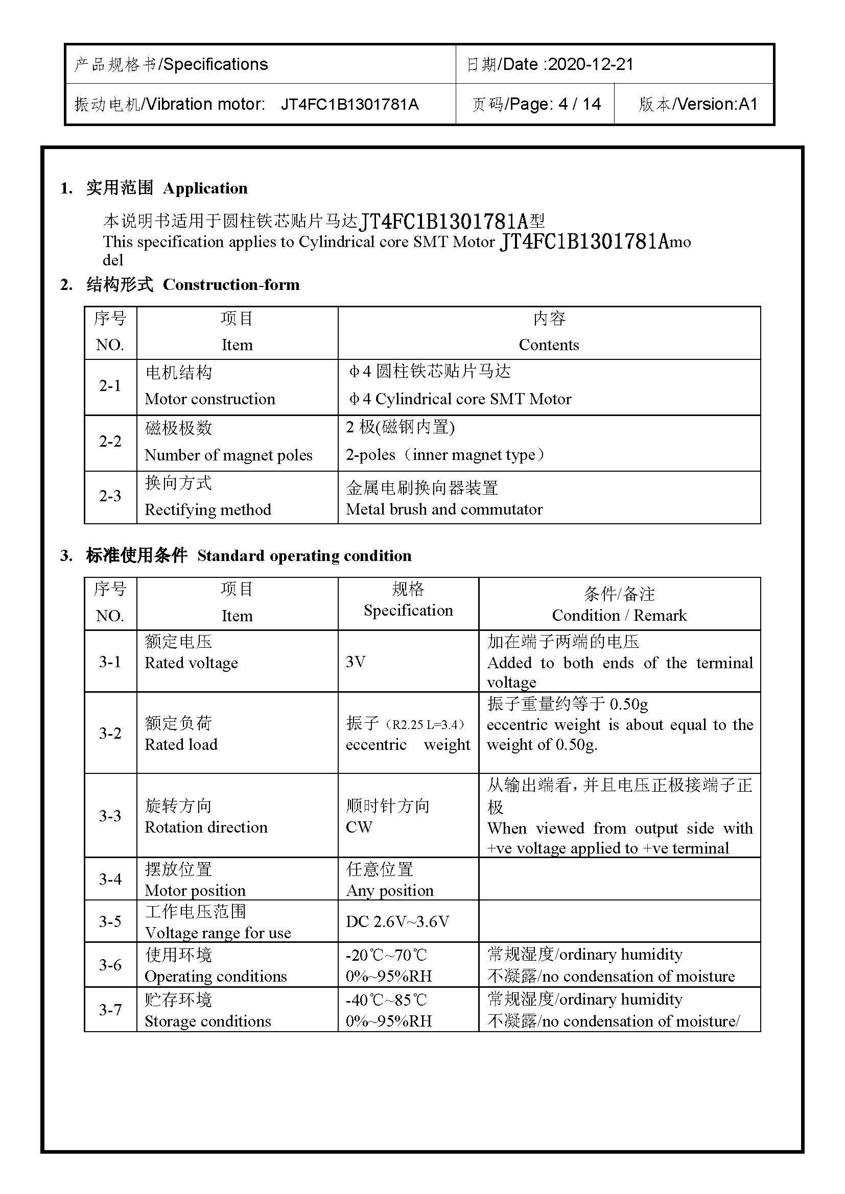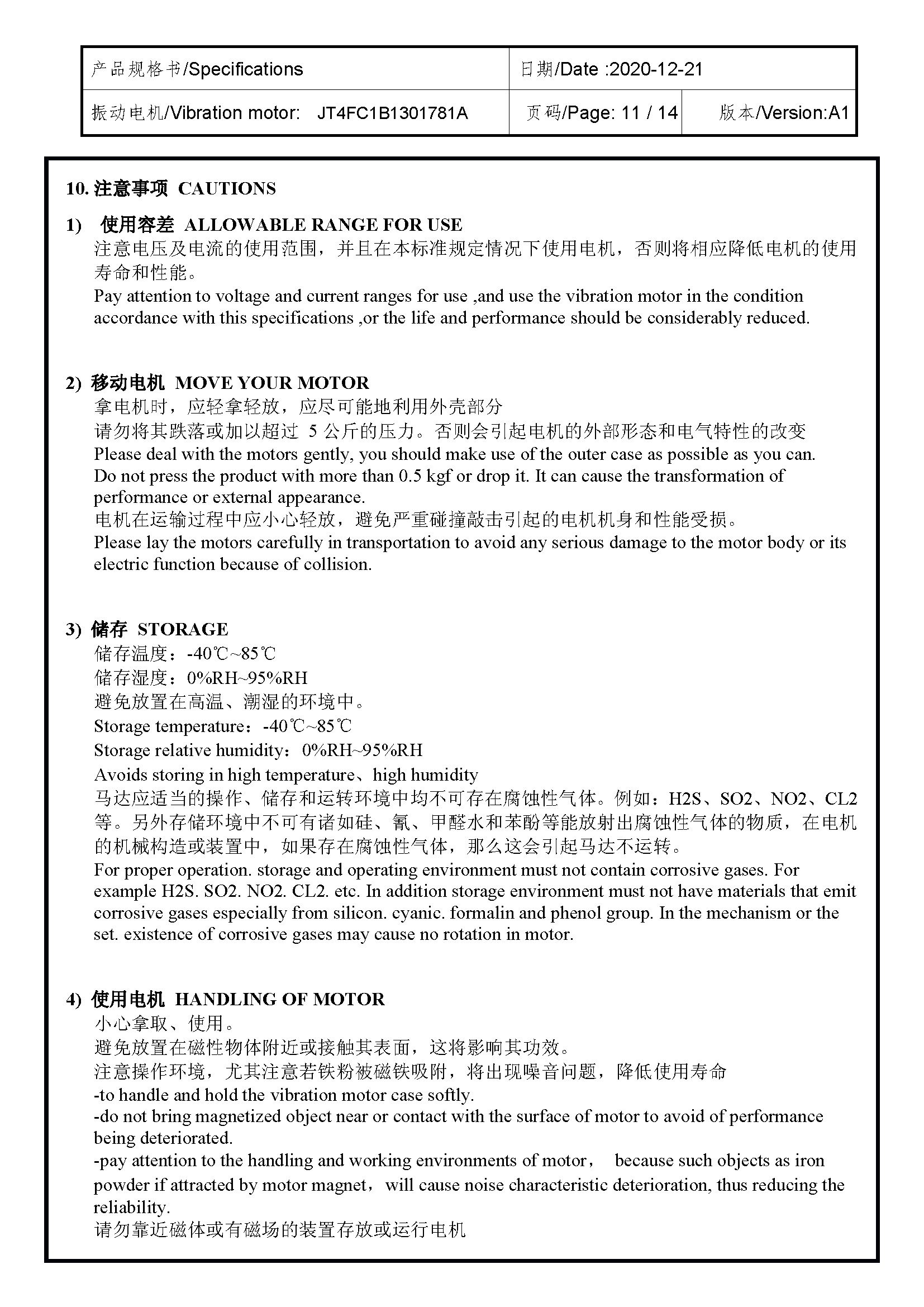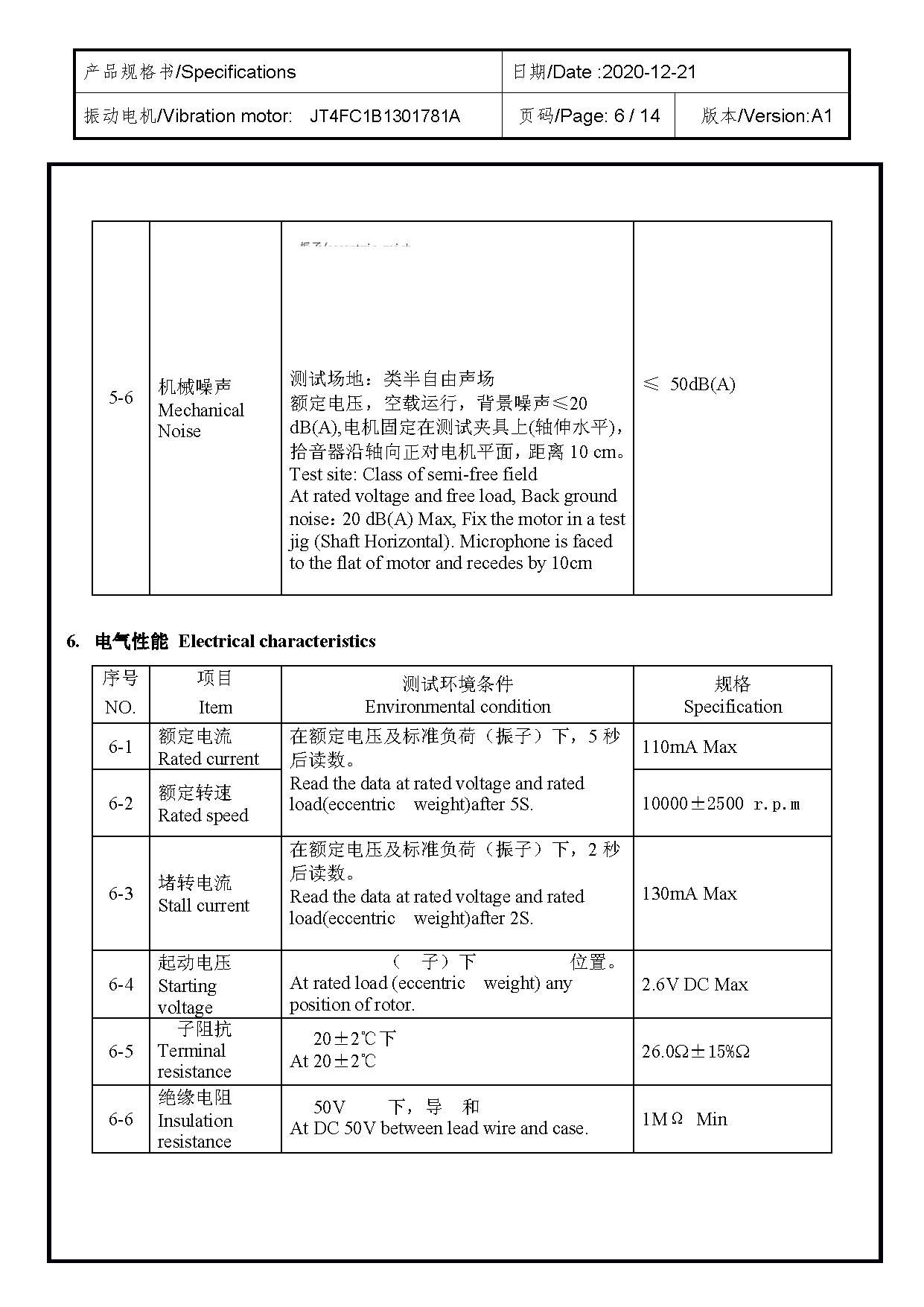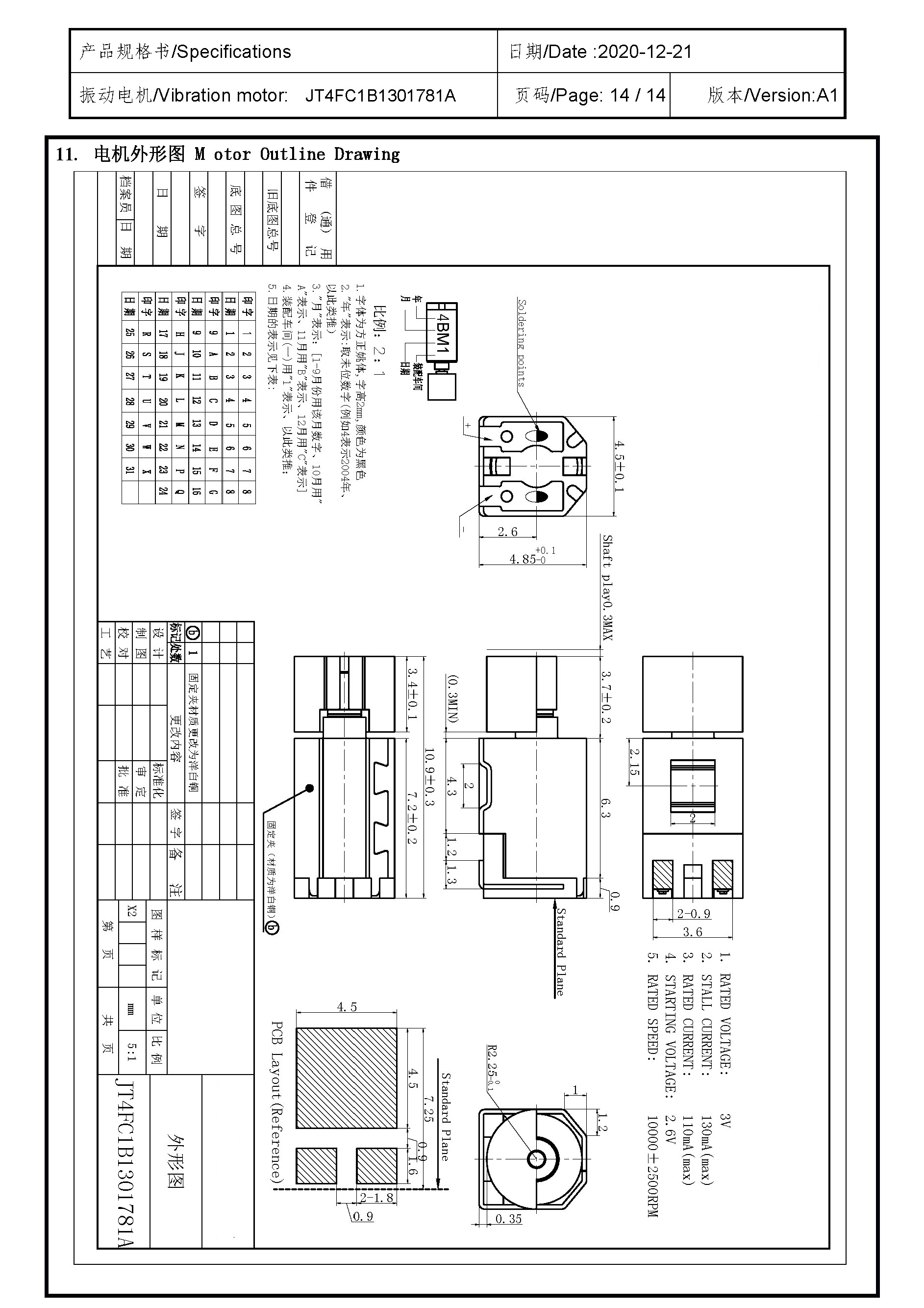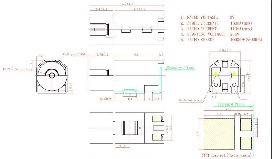 Size:11.5×4.5×4.85 | Rated voltage:3V | Rated current:≤110MA | Rated speed:10000±2500 | Starting voltage:≤2.6V